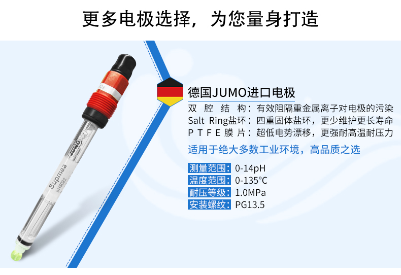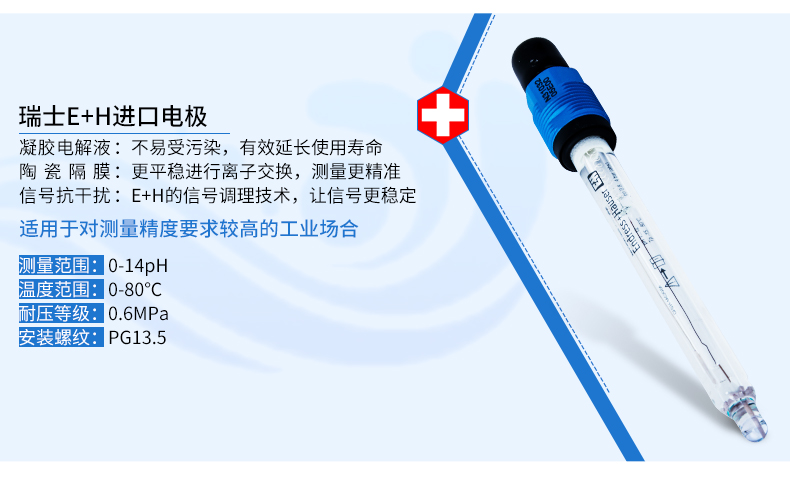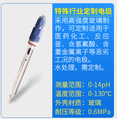 聯測新款pH塑殼電極SIN-pH5019,采用PON外殼材質,耐磨程度堪比鋼材,長款接觸探頭,使用壽命更久,廣泛應用于廢水處理和包括采礦冶煉、造紙、紙漿、紡織品、石油化工、半導體電子工業流程、生物技術下游工程等領域,能耐80攝氏度的高溫,并能耐強酸強堿侵蝕。