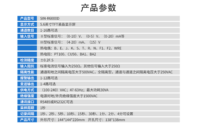 產品名稱:聯測_SIN-R6000D_無紙記錄儀