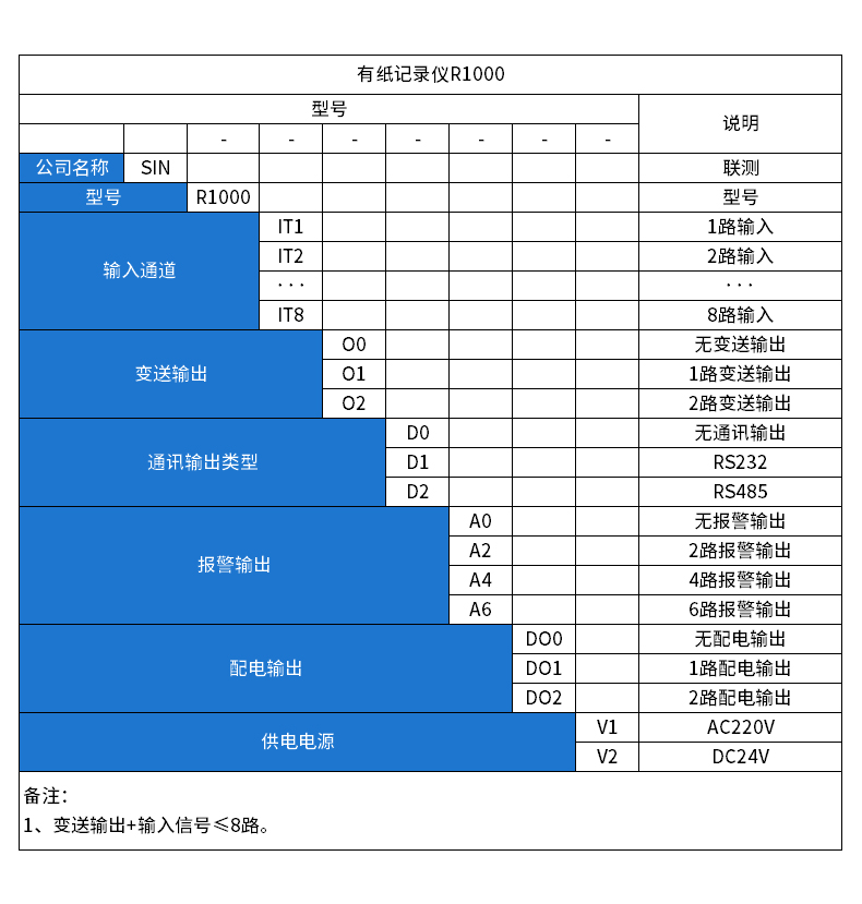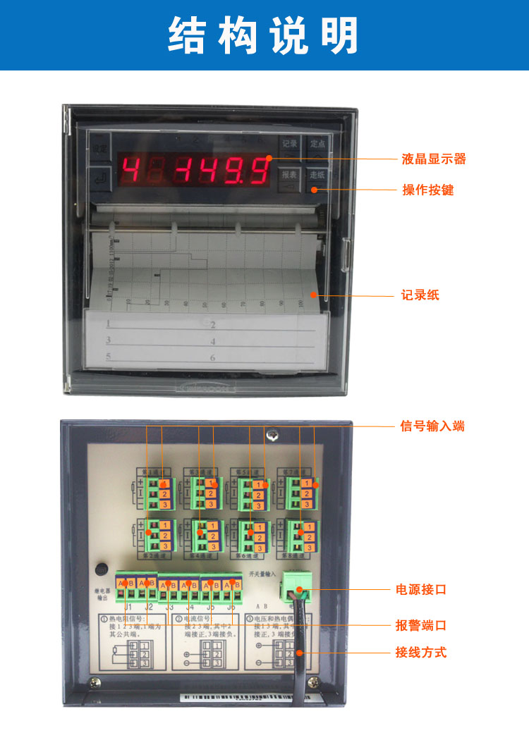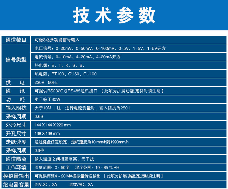 SIN-R1000有紙溫度記錄儀最多具有8路輸入通道,2路模擬量輸出,通道之間采用點(diǎn)點(diǎn)隔離;均可直接選擇接收多種熱電偶、熱電阻、壓力變送器、電壓、電流信號(hào),并可對(duì)被測(cè)信號(hào)進(jìn)行數(shù)字顯示及進(jìn)行趨勢(shì)記錄和數(shù)字記錄,能在本身打印的120mm寬的紙格上同時(shí)記錄刻度值、時(shí)間及每一個(gè)信號(hào)的曲線,并將通道號(hào)印在各通道的軌跡旁。
